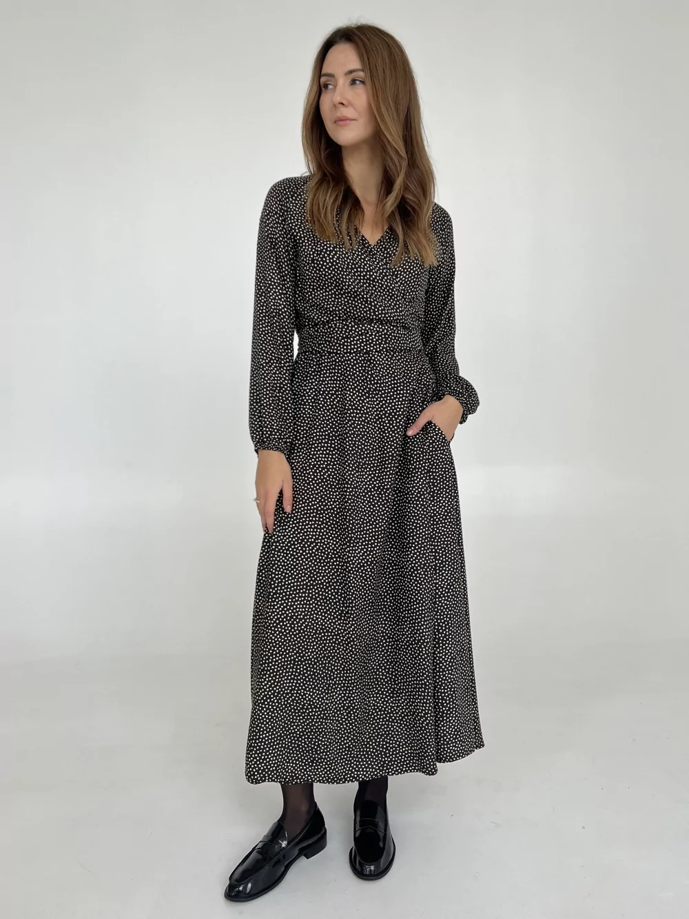 Została uszyta z wysokiej jakości, certyfikowanej wiskozy. Rewelacyjnie prezentuje się na każdym typie sylwetki. Piękny dekolt w literkę V wyszczupla górne partie ciała i wydłuża szyję. Wiązanie w talii podkreśla kobiecą figurę. Chociaż ma długie rękawy to są one idealne nawet na upalne dni.