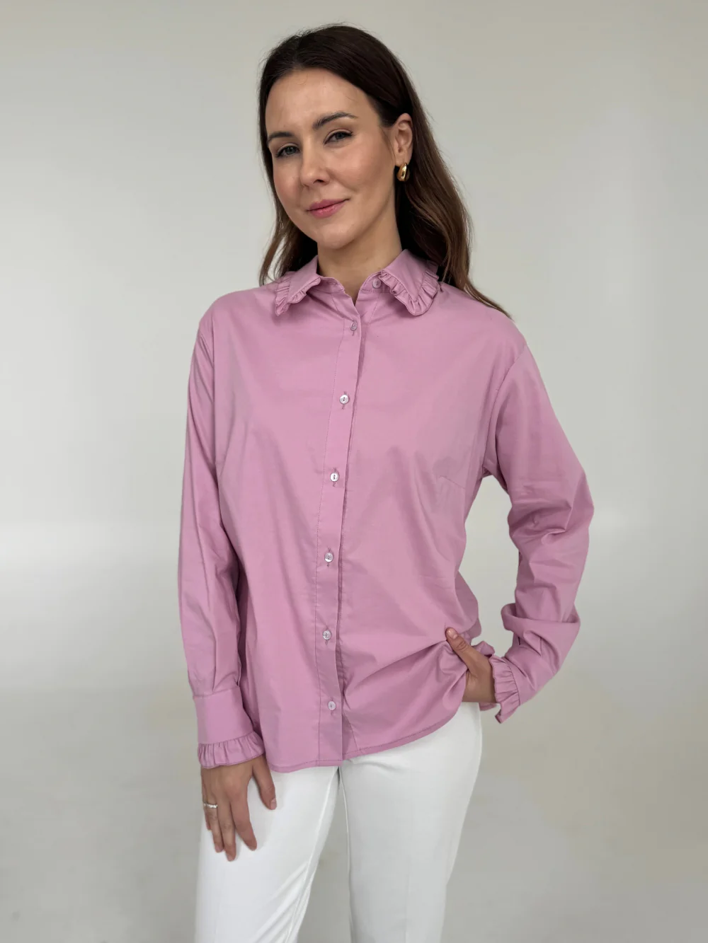 Model Margot ma delikatne falbanki przy kołnierzyku i mankietach, które nadają mu lekkości i wyjątkowego charakteru. Swobodny krój pięknie układa się na sylwetce i daje wiele możliwości stylizacji - od eleganckich zestawów po nowoczesne połączenia z koronkowymi spodniami. To ponadczasowa baza, która sprawdzi się na co dzień, do pracy i na świąteczne wyjścia.